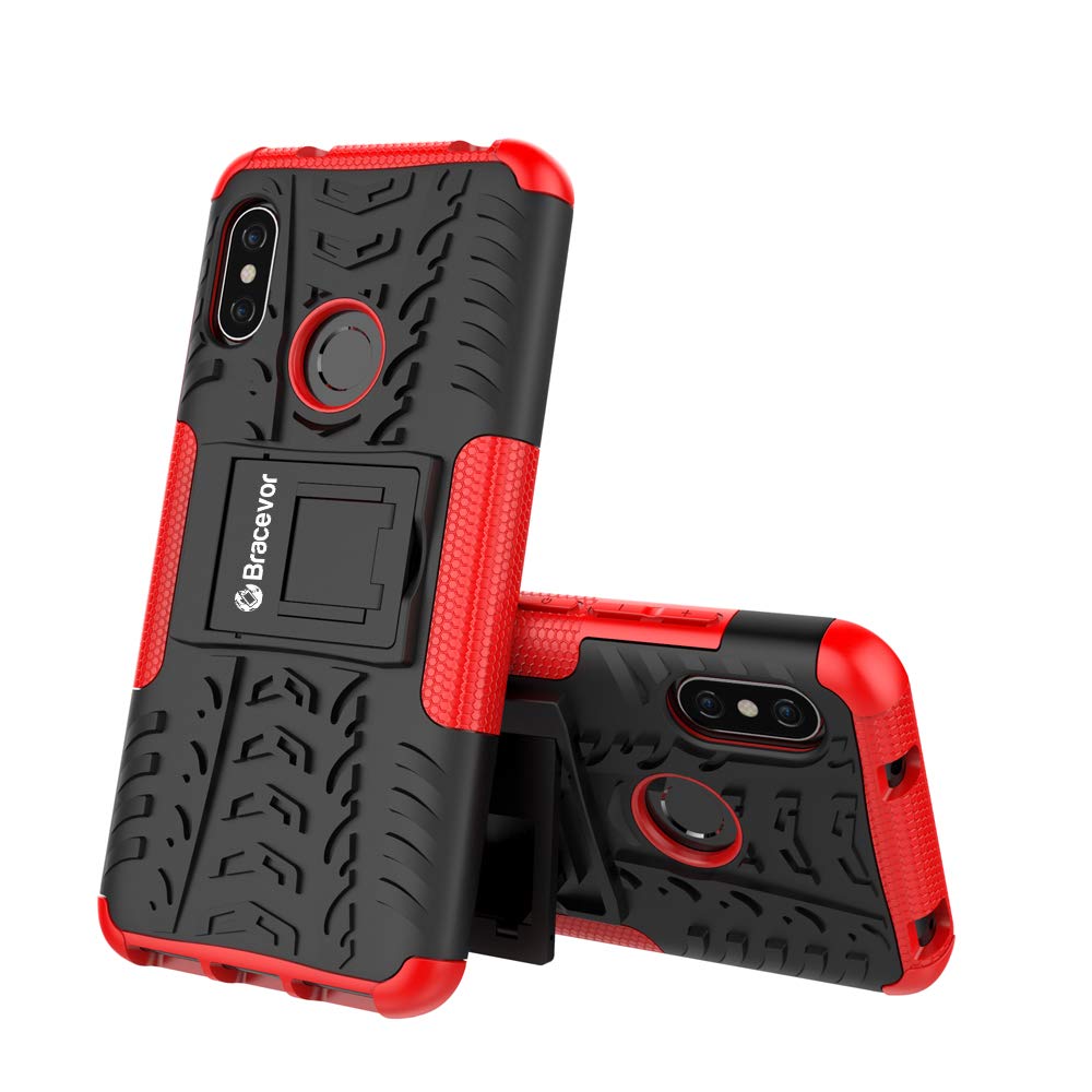 Bracevor Shockproof Hybrid Kickstand Back Case Defender Cover for Xiaomi Redmi 6 Pro - Red