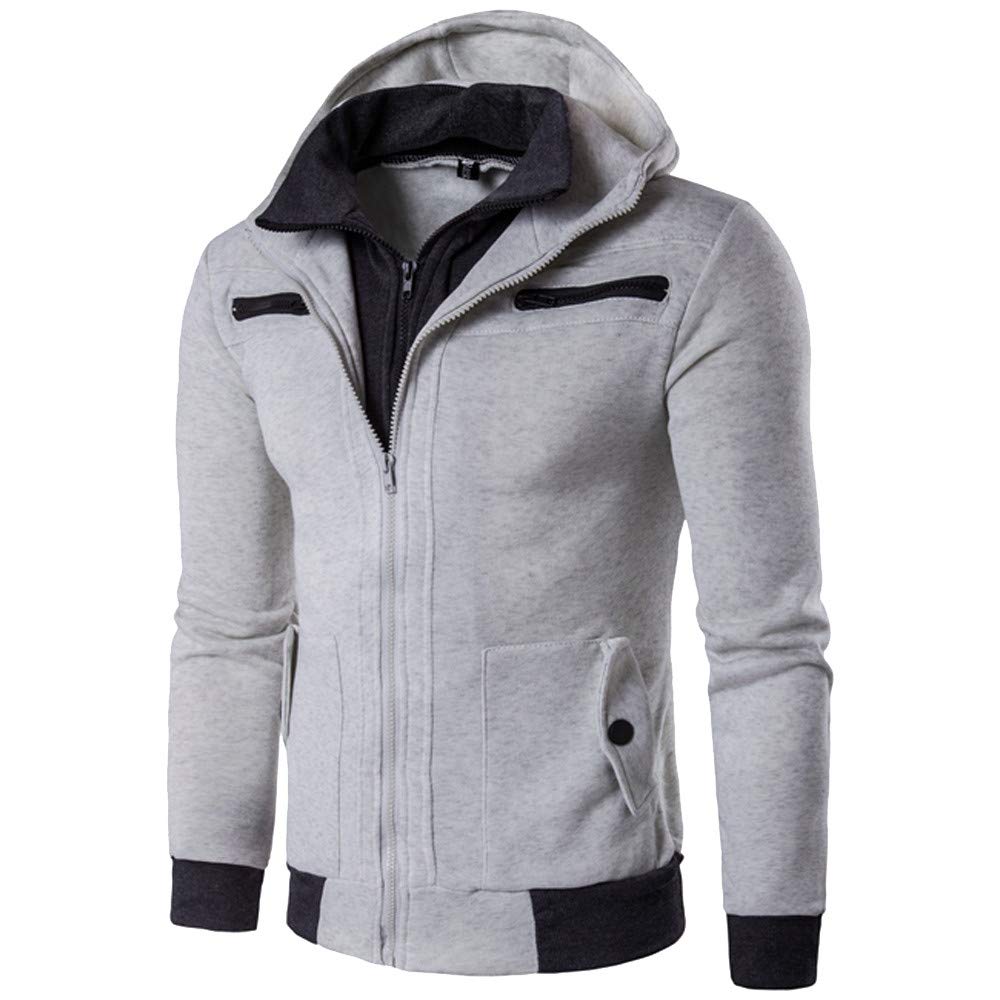 Binmer(TM) Men's Jacket Top Fashion Men's Autumn Winter Casual Zipper Thermal Hoodie Warm Full Sleeve Jacket Coats TopsGray